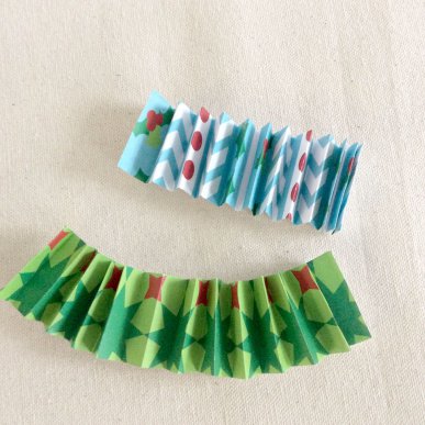 • Step 2Cut a strip of Christmas paper approximately 3cm x 30cm. Fold the length of the strip using an accordion fold.