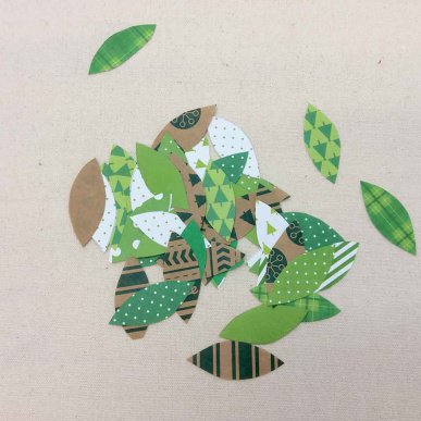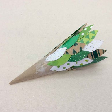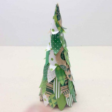 • Make sure the first layer of leaves is level with the bottom edge of your tree. This means that your tree can stand up properly and not be leaning on the paper leaves.