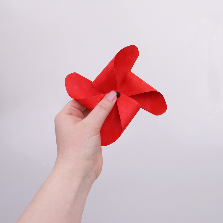• Step 7Use sticky tape to secure the straw to the back of the paper poppy. Your Pinwheel Paper Poppy is now ready to display!
