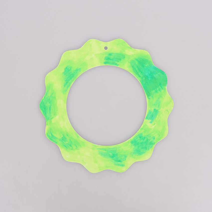 • Step 1Paint the cardboard wreath the colour of your choice using acrylic paint or paint sticks. Allow to dry.