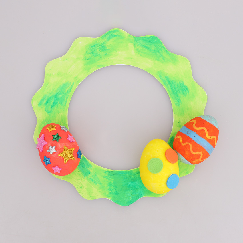 • Step 4Position the eggs where you would like them onto the wreath and glue into place. Allow to dry.