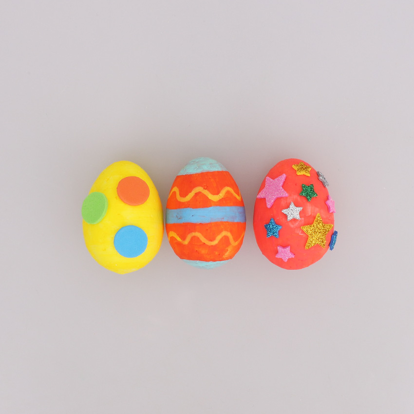 • Step 3Decorate three decofoam eggs with paint and foam stickers. Allow to dry.