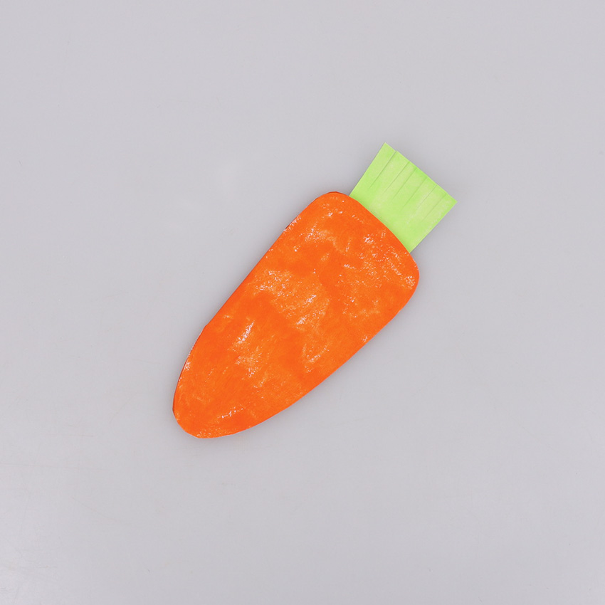 • Step 3Following the grey dotted lines, fold the Carrot template in half. Glue the Carrot Leaf onto the back of the folded carrot. Allow to dry.
