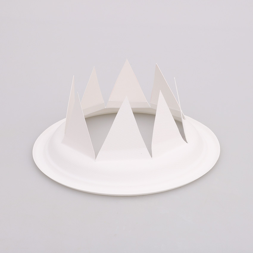 • Step 1Print out the template provided and use it as a guide to cut triangle tabs into your plate. Turn your plate upside down so the bottom is facing up. Open your scissors and carefully push through the centre point to create a hole then cut along the solid black lines. Fold the tabs outwards as shown. Adult supervision is recommended when using scissors.
