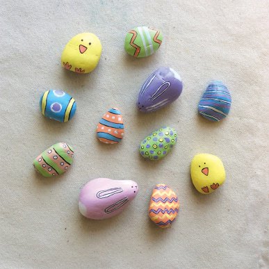 • Step 1Collect rocks that could resemble either an easter egg, bunny or chick.