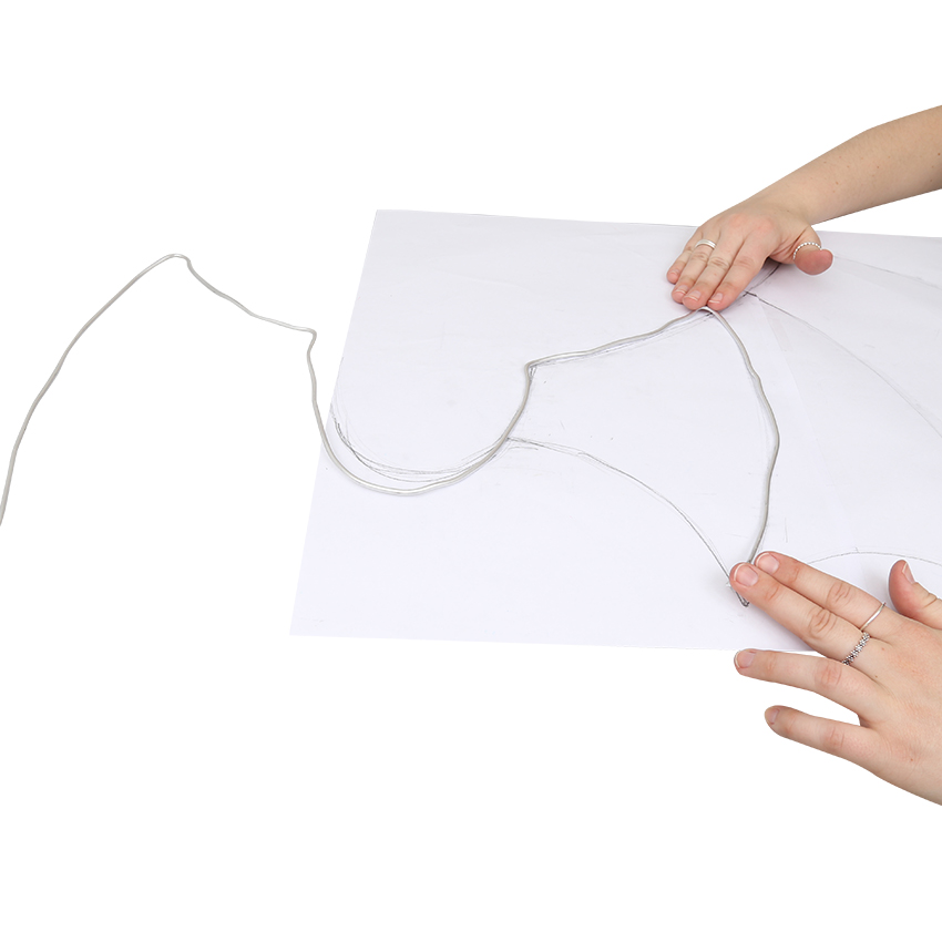 • Step 3Once you have created the ‘U’, flip the armature wire over and use your template to create the other wing on the other side of the ‘U’. Cut the wire using wire strippers or scissors. Adult supervision is recommended when using wire strippers or scissors.