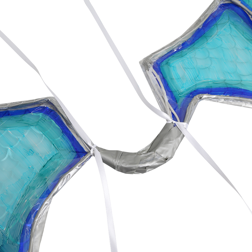 • Step 14Use 2 pieces of ribbon that measure at least 1m long. Tie the ribbon in a knot either side of the ‘U’ as shown in the image. Place the wings against your back and wrap the ribbon around your arms and tie at the front to secure.