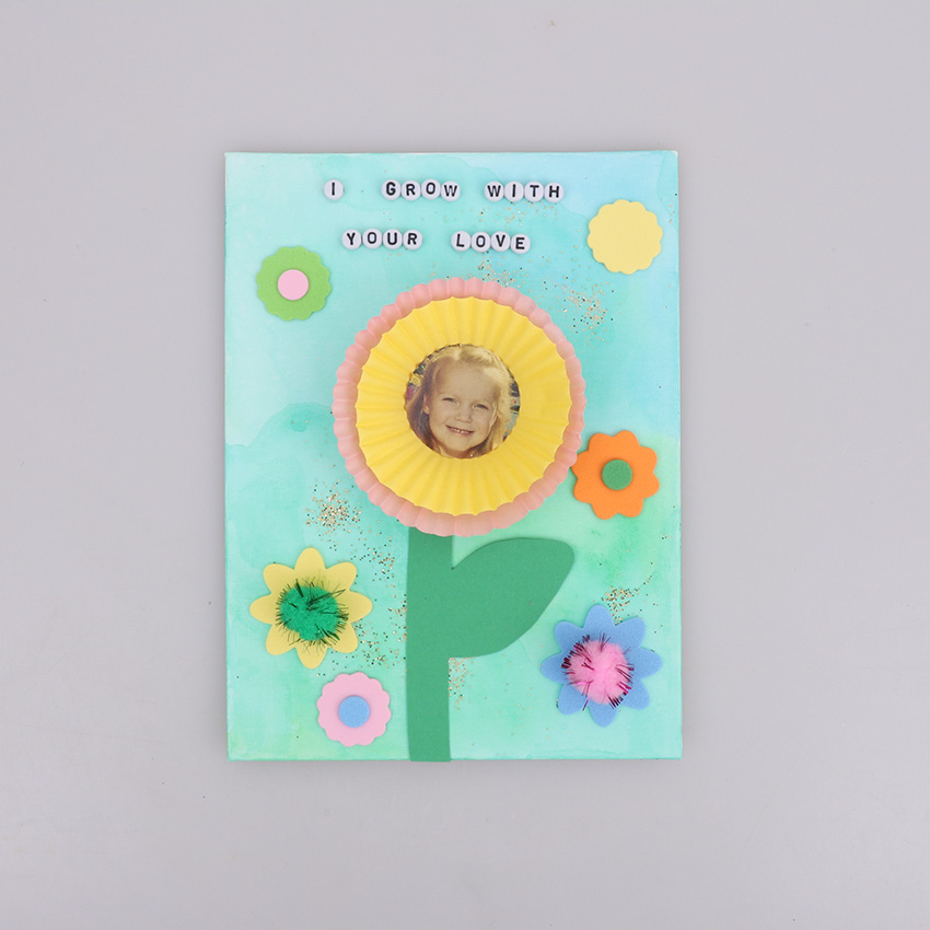 • Step 5You may wish to decorate the rest of the canvas using foam stickers and pom poms or create a special message using alphabet pony beads.