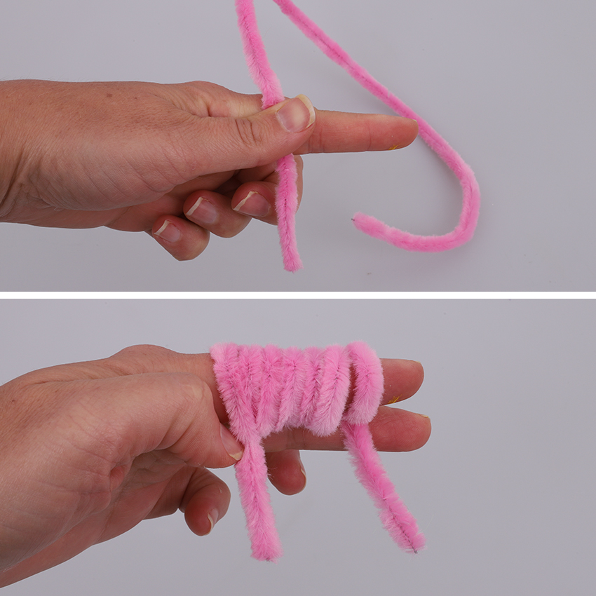 • Step 3Take a chenille stem and wrap it around your index finger, leaving about 3cm at each end.