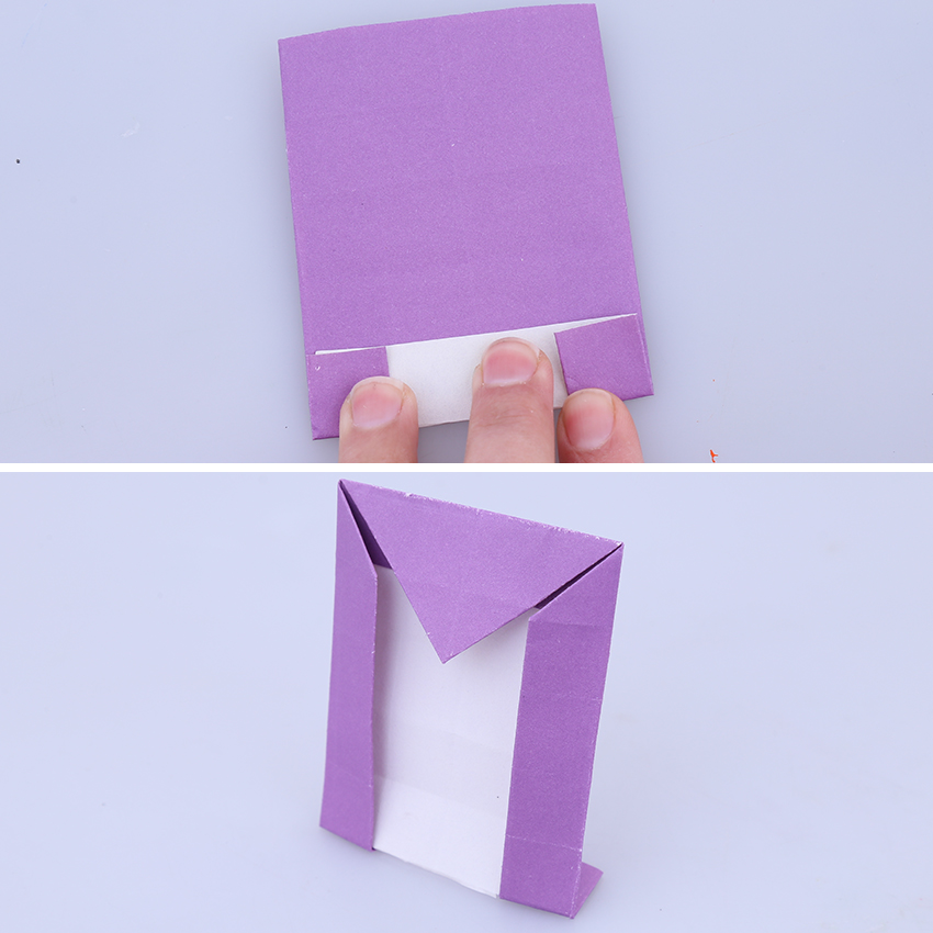 • Step 1Choose a coloured paper square and lay it in front of you so the white side is facing up. Fold the square in half horizontally as shown, then unfold.