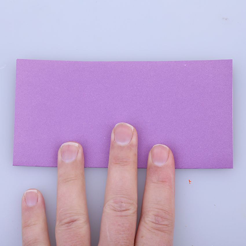 • Step 2Fold the top and bottom edges into the centre line that you created in step one. Flip the paper over and again fold the top and bottom edges into the centre line.