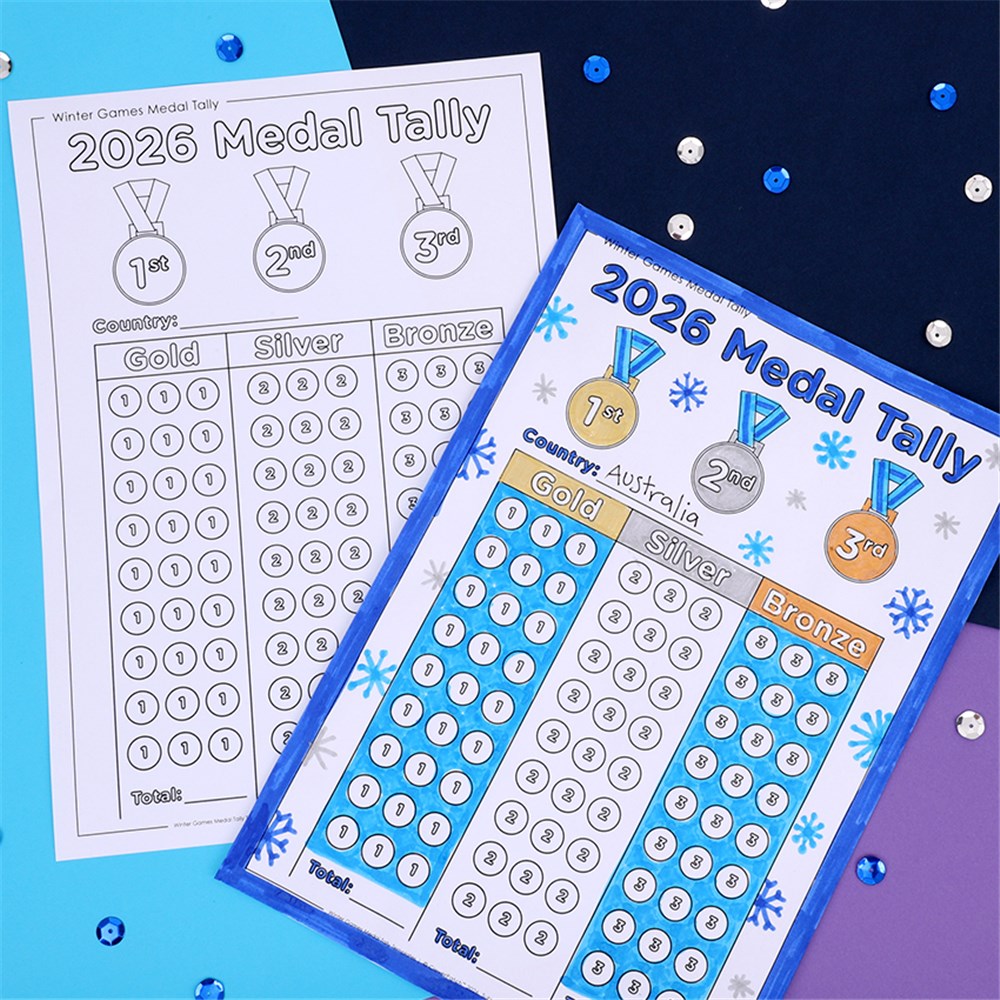 • Step 1Print out your medal tally colouring sheet. We recommend printing onto cover paper as this provides a sturdy surface for decorating.