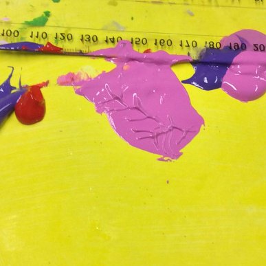Create a unique and beautiful paint pattern using a ruler and paint. You'll be amazed at the way the colours mix together and create a lovely pattern!