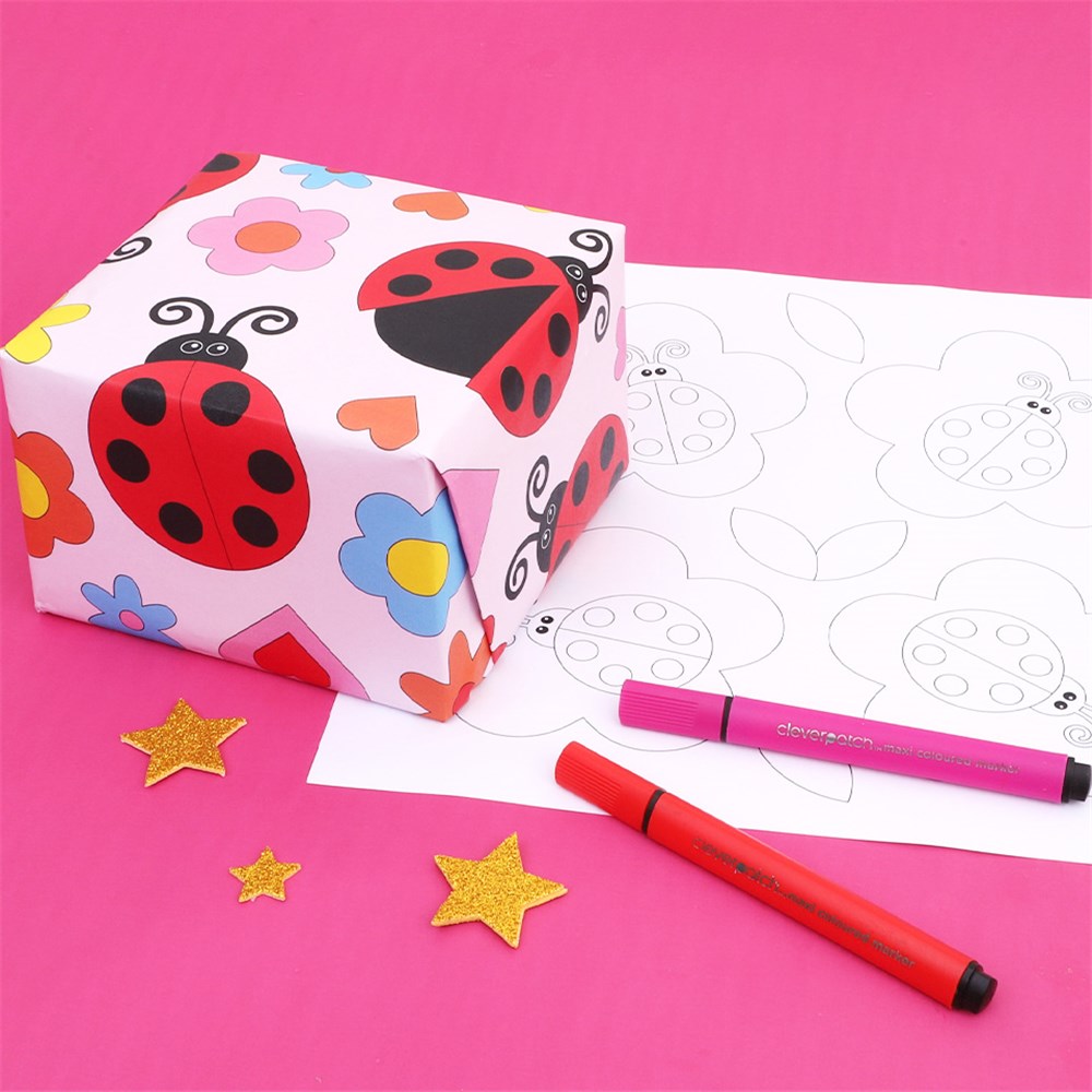 • Step 3Your Ladybug Wrapping Paper is now ready to use. Wrap up your gifts for someone special using the decorated paper and gift with your matching card!