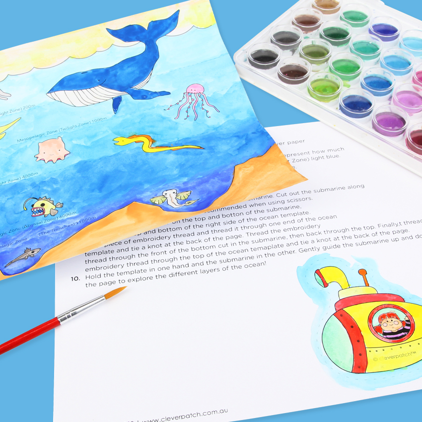 • Step 2 Colour the Ocean Zones according to the steps provided on the second page of the template. We have chosen to use watercolour to decorate our templates. Allow to dry if needed.
