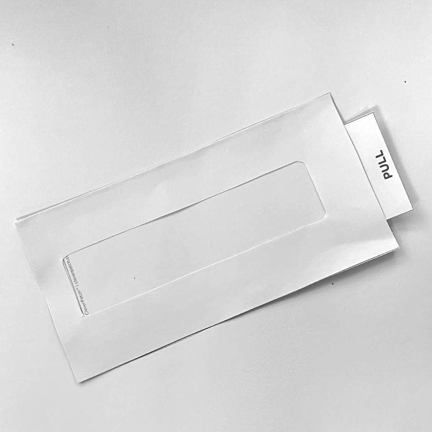 • Step 4Insert the long rectangular ‘PULL’ template tab piece inside the pocket, making sure the end that says ‘PULL’ is sticking out of the right-hand side.
