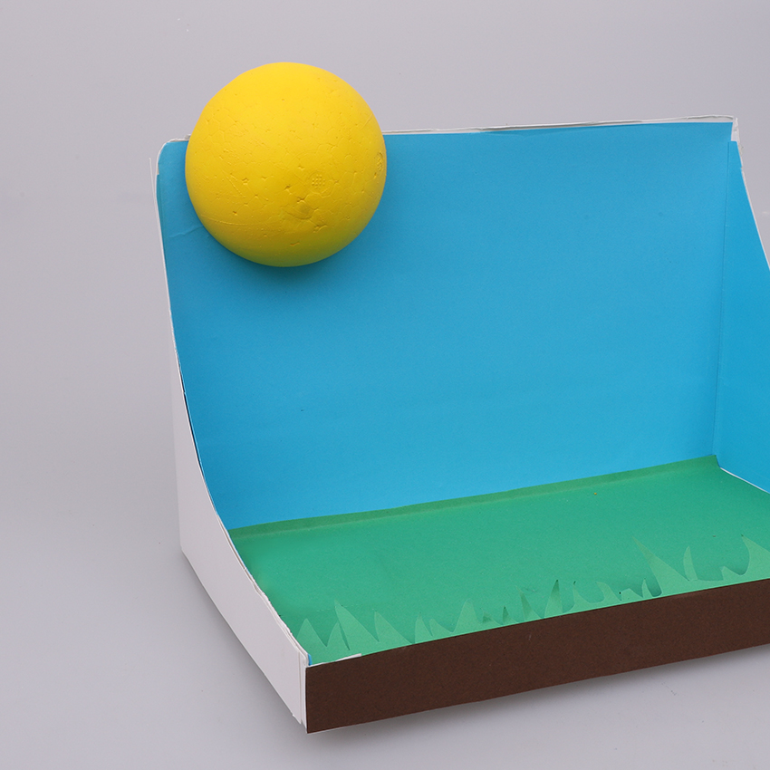 • Step 3Paint a decofoam half circle yellow and allow to dry. Attach it to the top left of the diorama using double sided tape. This will be the sun!