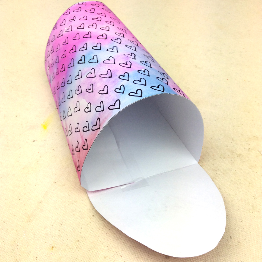 • Step 7When you have rolled it all the way over, you can tuck the large end tab into the base and tape in place. You now have your letterbox shape!