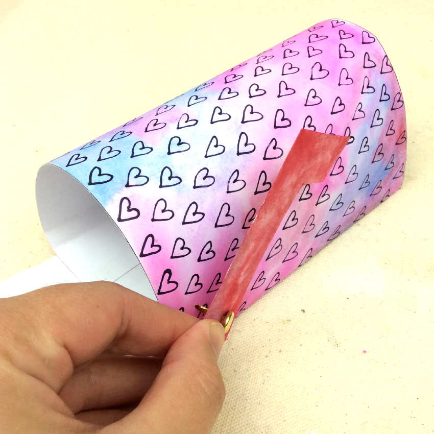 • Step 9Fold the front arched flap of your letterbox upwards and slightly into the letterbox to hold it shut. Your Love Letterbox is now ready for your Valentine’s Mail!
