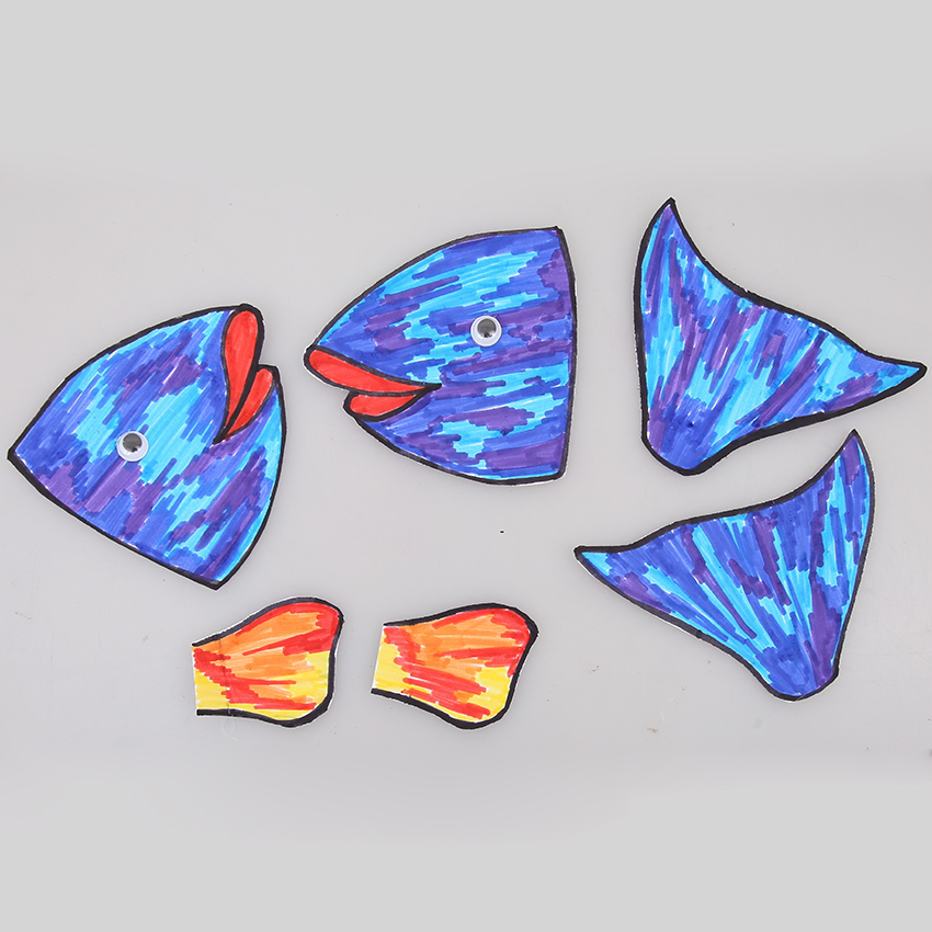 • Step 4Decorate the template provided using markers and then cut out all the pieces. Add a wiggle eye to each head piece using glue. Allow to dry.