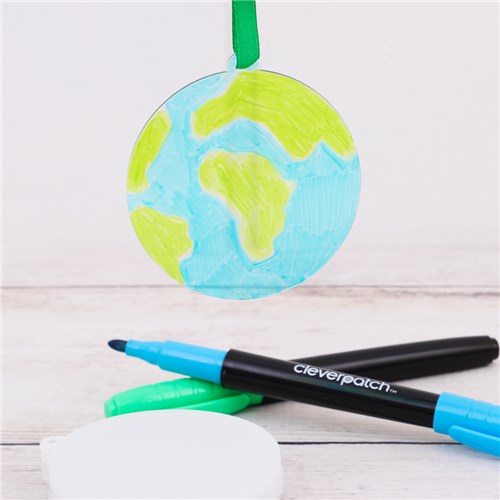• Step 3Place the acrylic circle over the top of your chosen template – we have given you 2 designs to choose from. Use the template as a guide to trace and colour in your design with permanent markers. Allow to dry.
