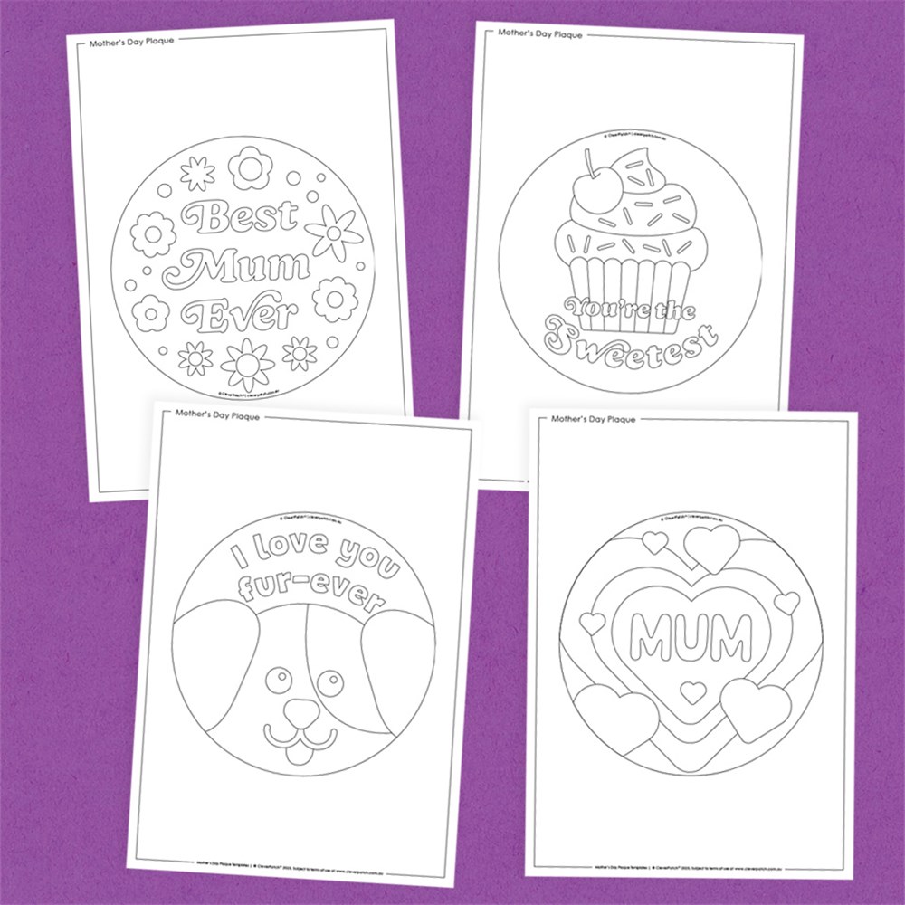 • Step 1Print out the plaque templates provided onto cover paper. Choose two of the template designs and decorate using coloured markers, pencils or paint. Allow to dry if needed.