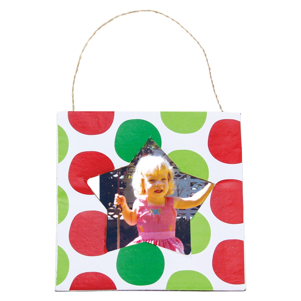 Handmade papier mache star cutout photo frame. Stand and twine hanger included. Plain for you to create. Frame measures 12 x 12cm. Space for photograph measures 8cm in diameter. WHILE STOCKS LAST!
