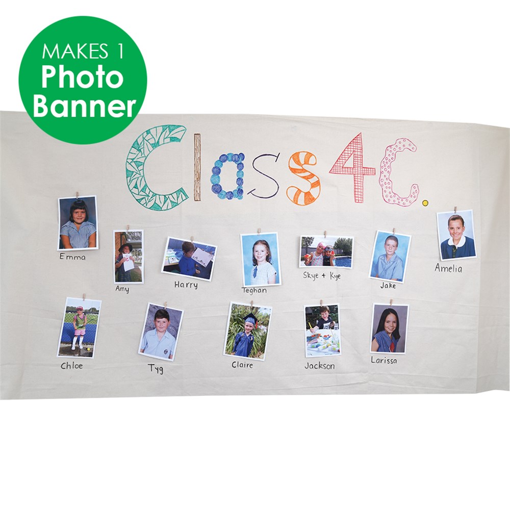 Group pack includes all components required to create a Canvas Photo Banner. Measures approximately 2.1 x 1m when completed. Contents may vary.