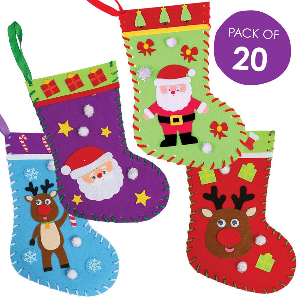 Each Multi Pack contains everything you need to make and decorate 20 stockings in 4 different designs!