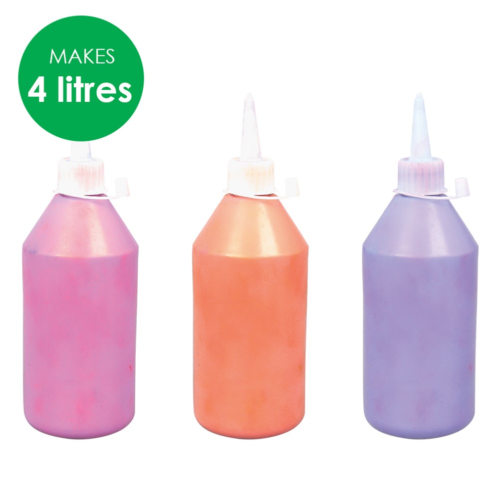 Group pack includes all components required to mix 4 Litres of paint. Mixing bowls and spoons are required to complete this activity (sold separately). Contents may vary.