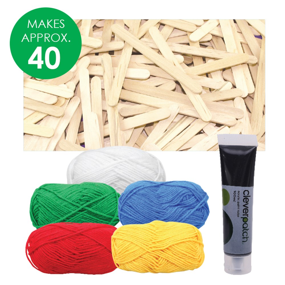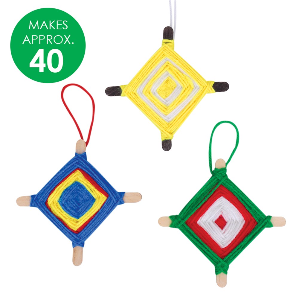 Group pack includes all components required to create approximately 40 God's Eyes. Measures approximately 11.5 x 11.5cm (not including hanger) when constructed. Scissors and paint brushes are required to complete this activity (sold separately). Contents may vary.
