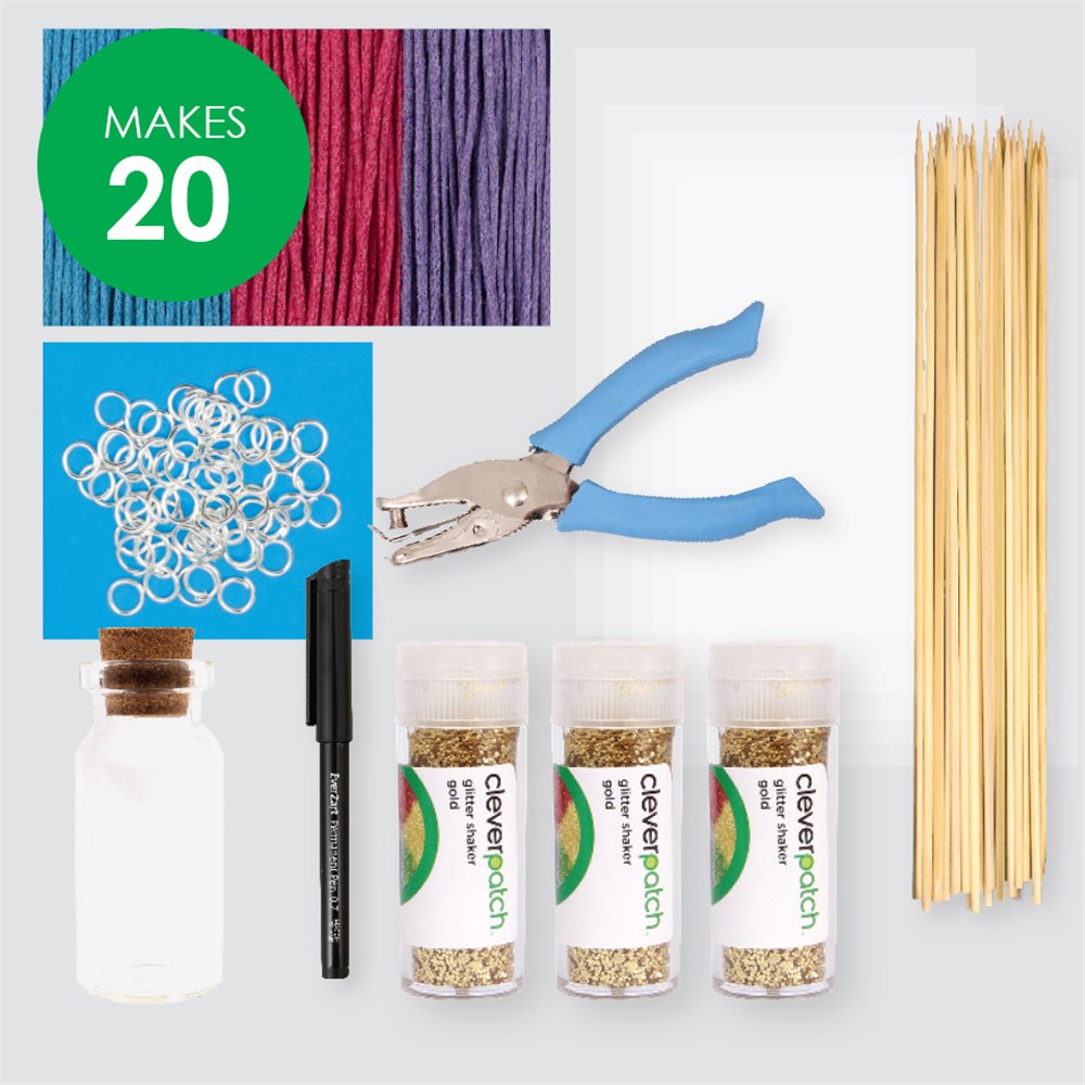 Group pack includes all components required to create 20 Notes in Bottles. Measures 2 x 5cm. Hands on Learning Resource included. Scissors and an oven are required to complete this activity (sold separately). Contents may vary.