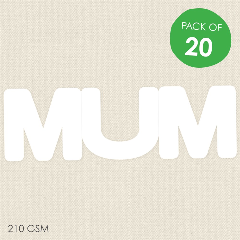 White cardboard folding MUM cards come plain for you to create. Concertina fold. Folded card measures 10 x 9.5cm. 210gsm board. Australian made. Envelopes not included.