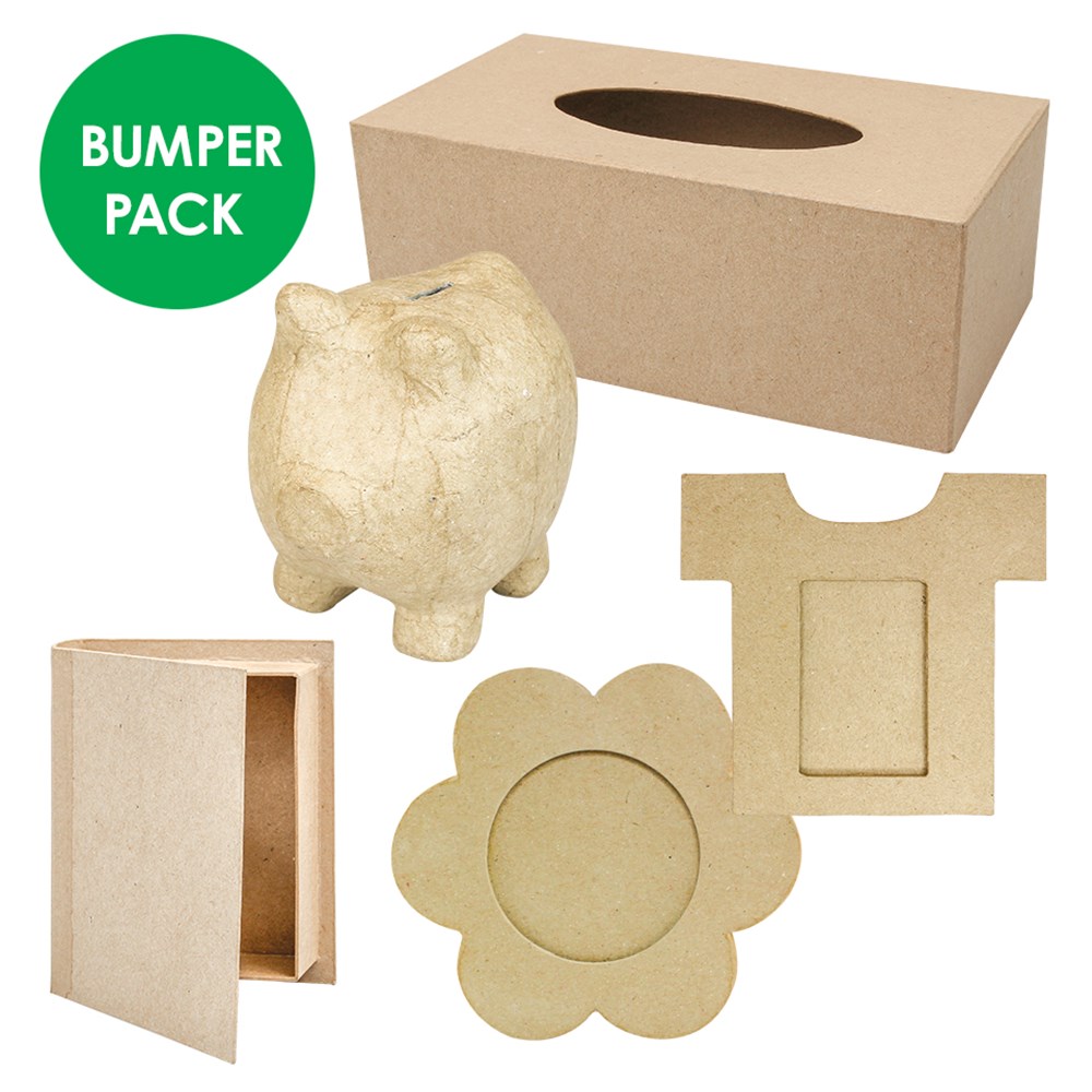 This pack includes an assortment of Papier Mache items for you to get creative with! You can use the materials in your craft cupboard to add your own twist on these amazing products. Includes :