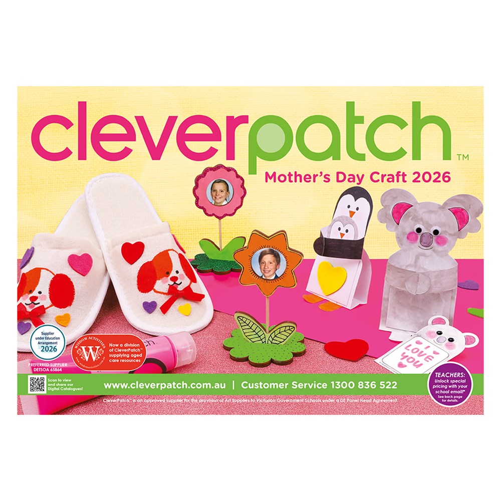 The 2026 CleverPatch Mother's Day catalogue includes our range of themed craft activities. If you're looking for the perfect thing to create and decorate for a gift for someone special this Mother's Day, this catalogue is for you! It includes CleverKits, Group Packs, Wood, Papier Mache, Collage and so much more.