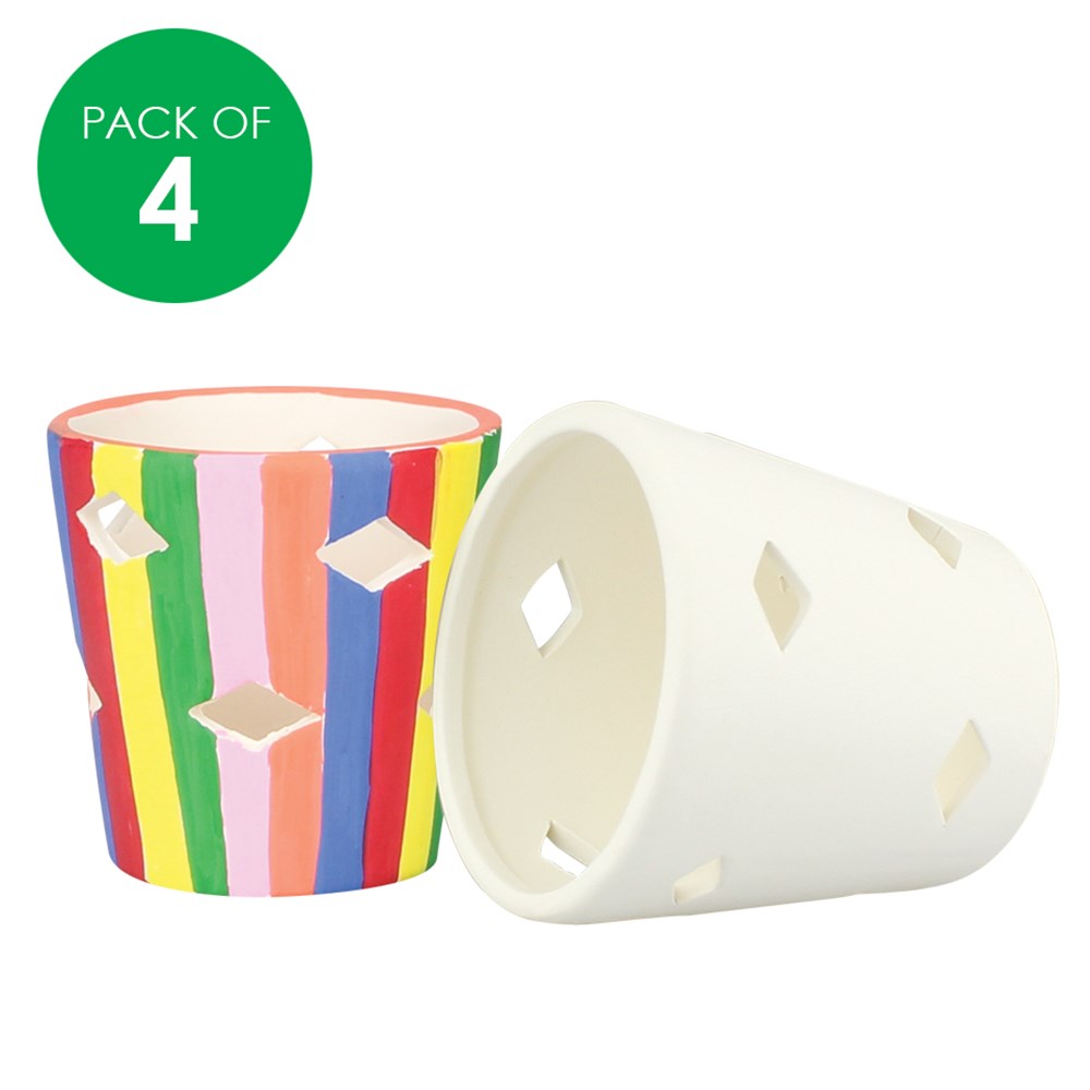 Plain for you to create. Decorate with our CleverPatch Ceramic & Terracotta Markers or CleverPatch Junior Artist Paint. Each tealight holder measures approximately 6.5 x 7cm.