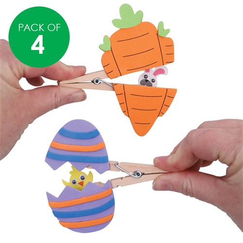 Pack includes all components required to make 4 Easter Peg Characters in 2 assorted designs. Each character's pieces are individually packed for easy use. Bunny measures approximately 9.7 x 9.5cm when assembled. Colours may vary.