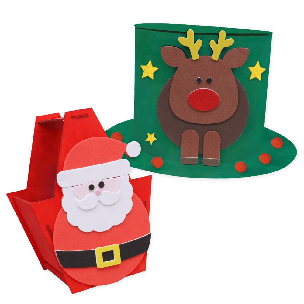 Pack includes all components required to make 4 Foam Christmas Characters. 2 different designs. Each character's pieces are individually packed for easy distribution and use. Santa measures 10 x 14.3cm when assembled. Accessories not included.