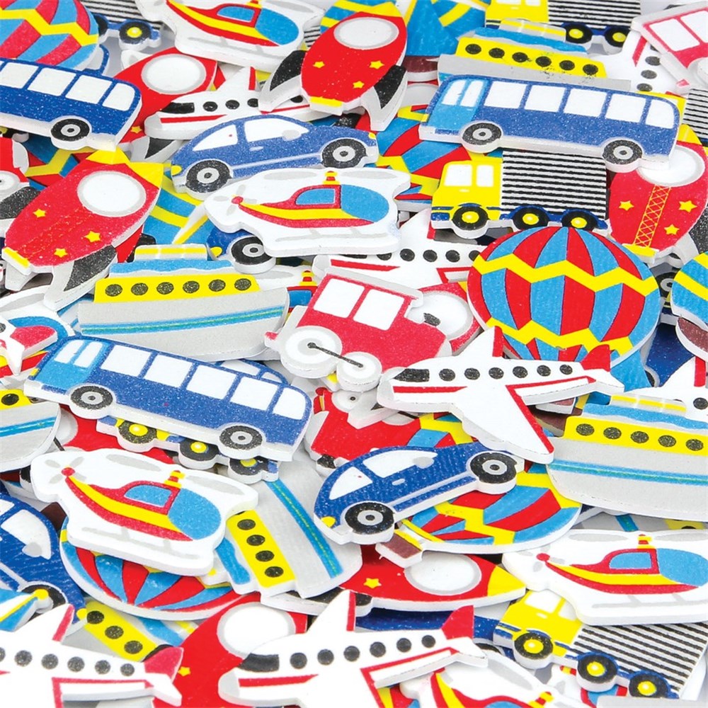 Self-adhesive foam transport stickers in assorted sizes, colours and designs. Largest sticker measures 3.5 x 4cm. WHILE STOCKS LAST!
