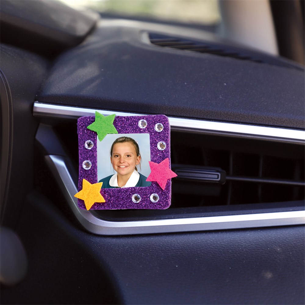 Decorate the acrylic panel, assemble, then clip onto your car air vent!