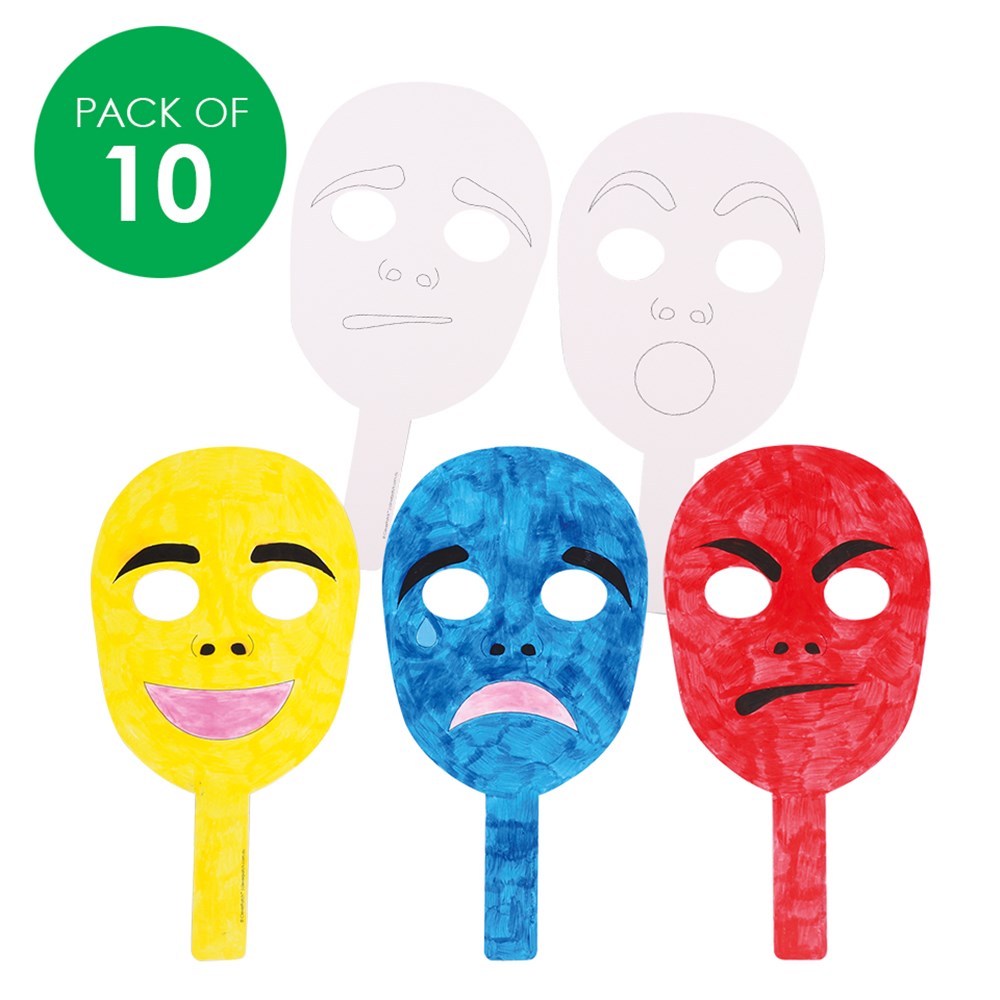 Pack includes 5 assorted pre-printed designs. Plain for you to create. Each mask measures 15 x 28.5cm. 1mm thick card.