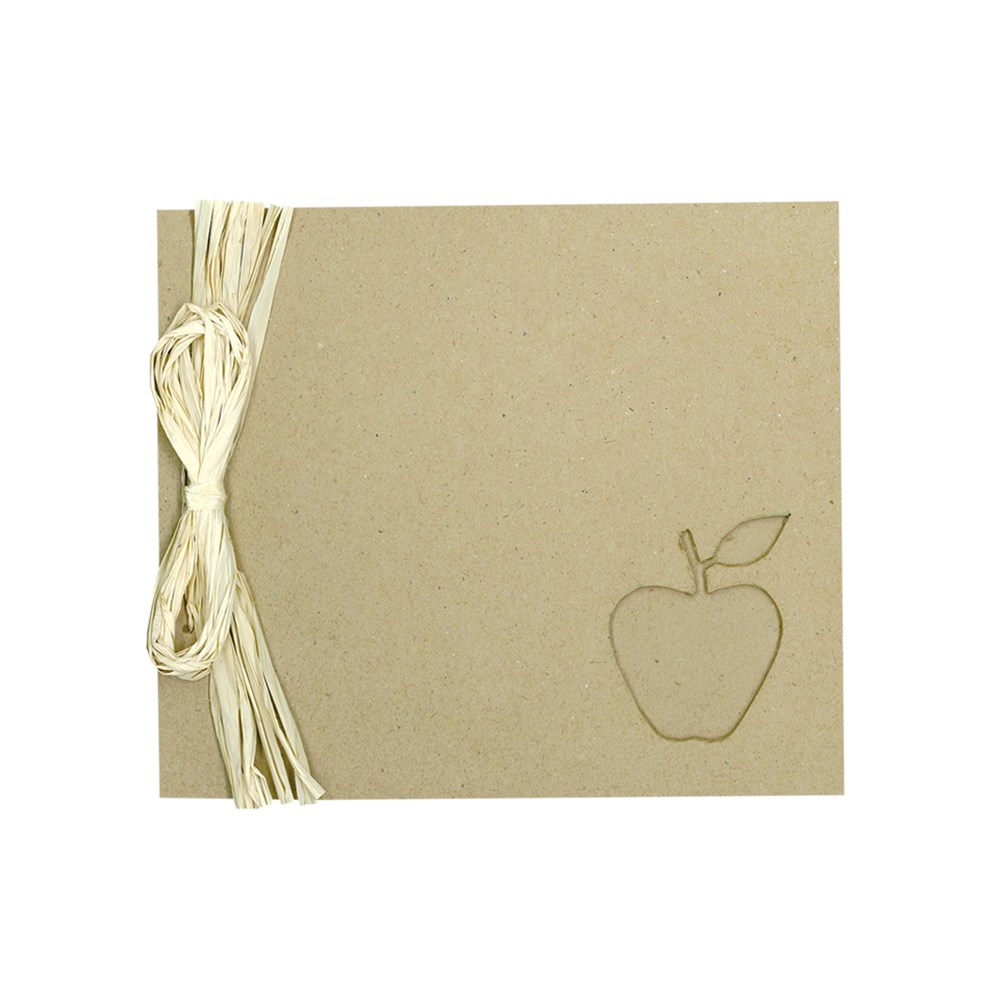 Plain for you to create. 20 pages. Handmade. Measures 20 x 18cm. Apple cutout measures 5 x 7cm. Raffia tie included. WHILE STOCKS LAST!