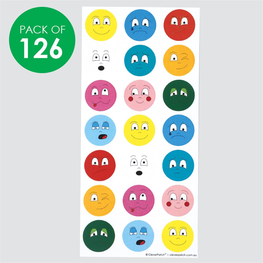 Stickers in assorted face emotions designs. Includes 6 sheets of stickers. Each sticker measures 2.8cm in diameter.