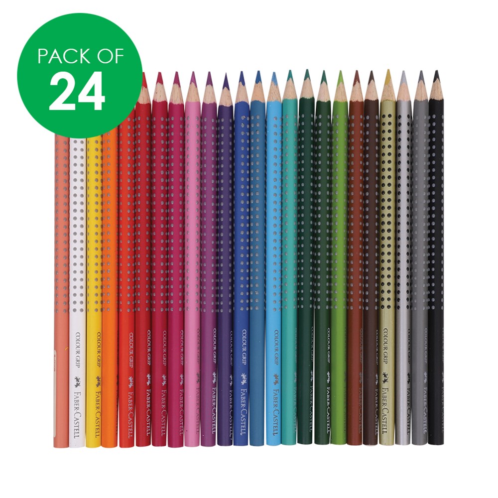 24 assorted colours. Each pencil measures 17.5 x 0.8cm. Storage box included. Non-toxic.