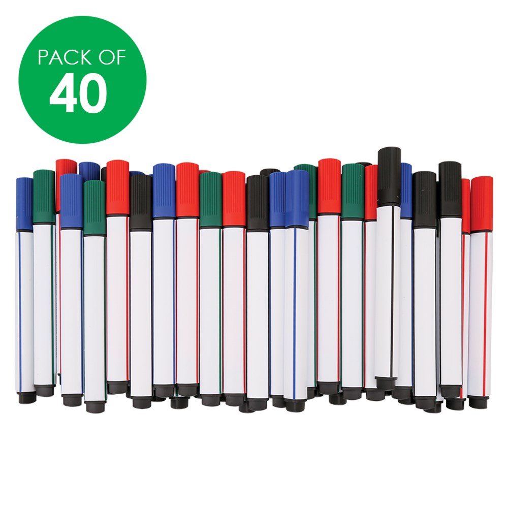 CleverPatch Triangular Whiteboard Markers - Coloured - Pack of 40