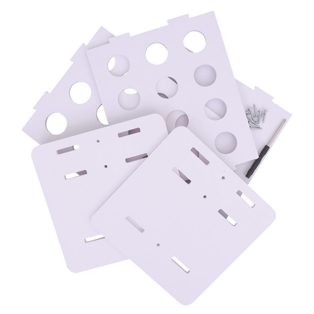 Space for 12 scissors. PVC. Supplied flat-packed for easy self-assembly. Includes screws, screwdriver and guide required for assembly. Measures 18 x 15 x 14.5cm when assembled.