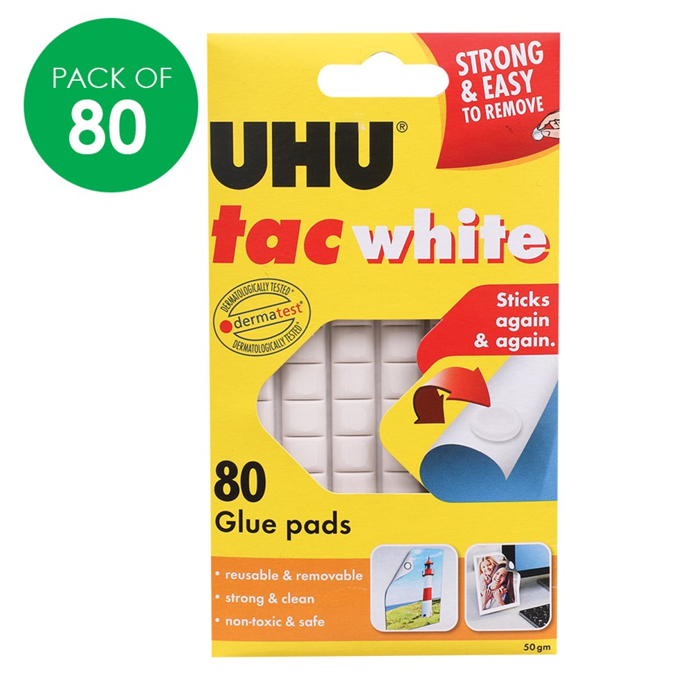 UHU tac white is a removable, reusable, multi-purpose adhesive. Used for quick and clean attachment of small, lightweight items such as photos, posters, artworks and much more around the classroom, home or office. Non-toxic.