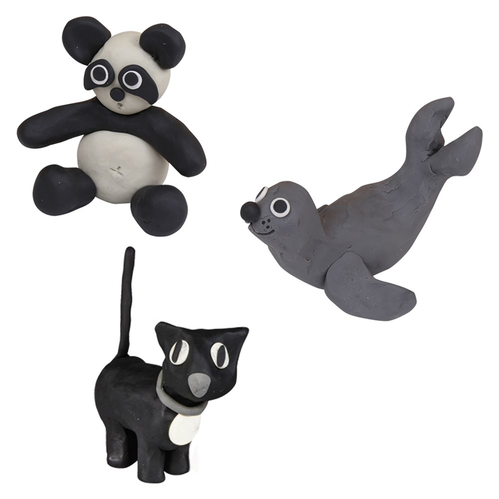 Sargent Art modelling clay in 4 assorted natural colours. Includes black, white, ivory and light grey. Contains 4 individually wrapped non-hardening clay sticks. Non-toxic.