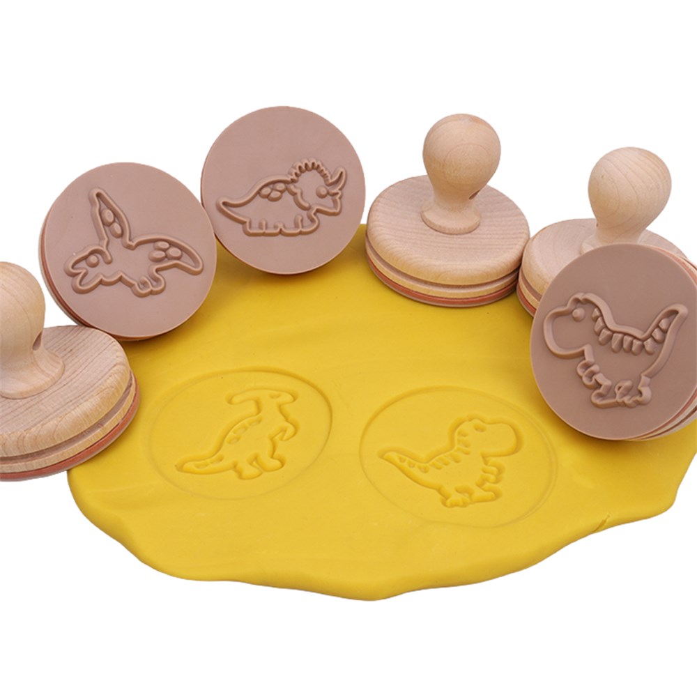 Pack of 6 wooden stamps featuring assorted Dinosaur designs.