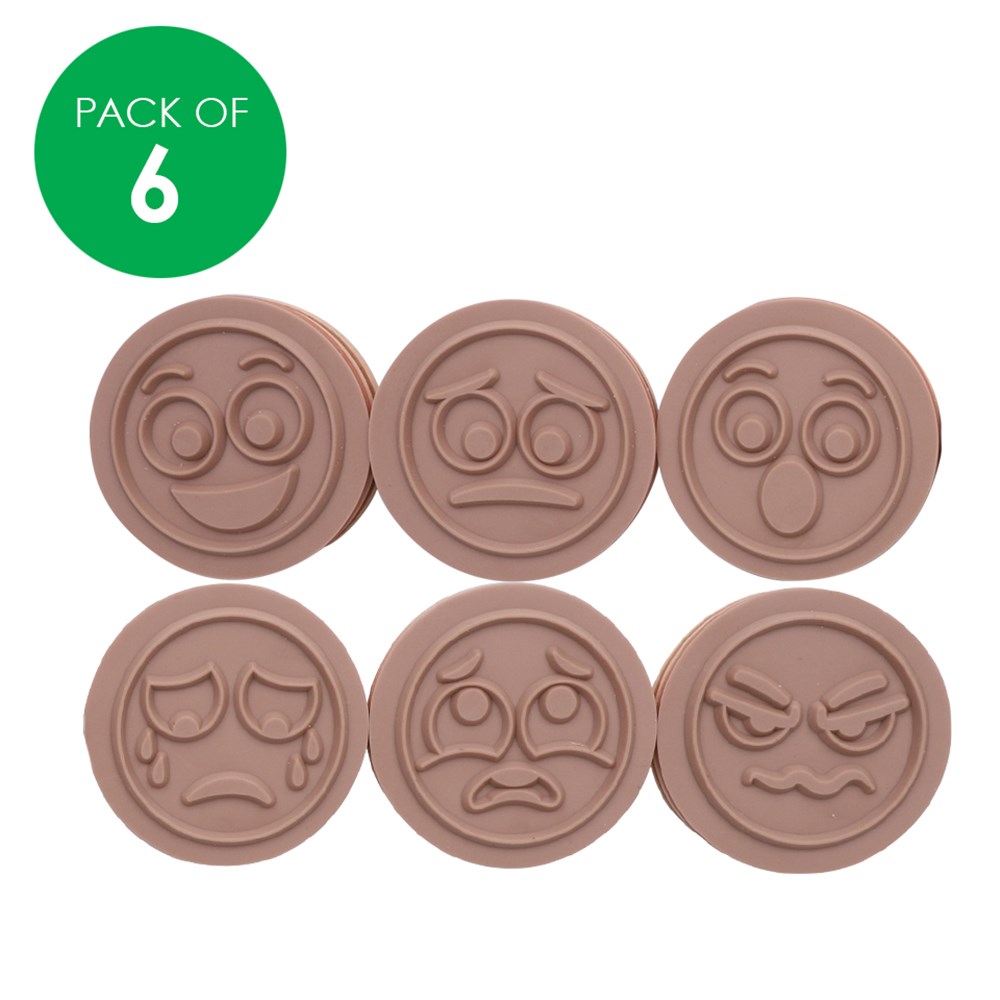Pack of 6 wooden stamps featuring assorted Emotion designs.